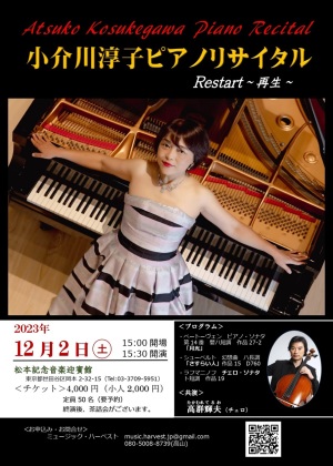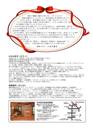 小介川淳子ピアノリサイタル (東京都松本記念音楽迎賓館)出演:小介川淳子・高群輝夫 表 裏 主催:ミュージック・ハーベスト |