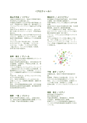 歌の泉コンサートVol.13〜風よ空よ〜(横浜市大倉山記念館ホール) 歌:高山千代美 橋基之 ヴァイオリン:尾張拓登 ピアノ:川瀬麻子、小原通代 |